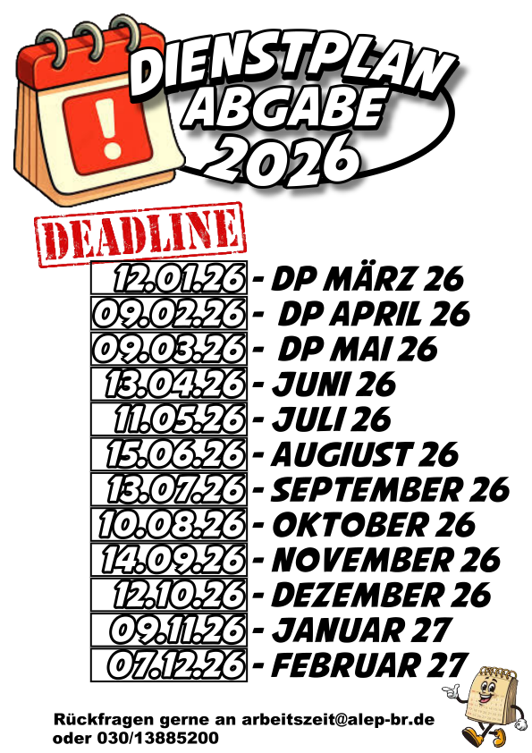 Bei Fragen oder Problemen in der Umsetzung könnt ihr uns gerne jederzeit über arbeitszeit@alep-br.de erreichen.