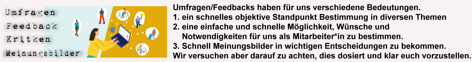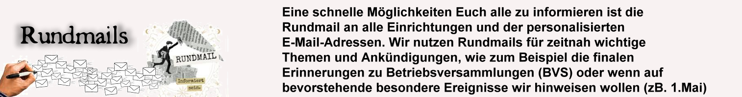 Eine der Hauptaufgaben ist es unsere Kolleg*innen über Entwicklungen im Träger zu informieren, Dies macht bei uns der Ausschuss Öffentlichkeitsarbeit, die verschiedene Mittel haben, diese enorm wichtige Kommunikatonsschnittstelle zu bearbeiten.
